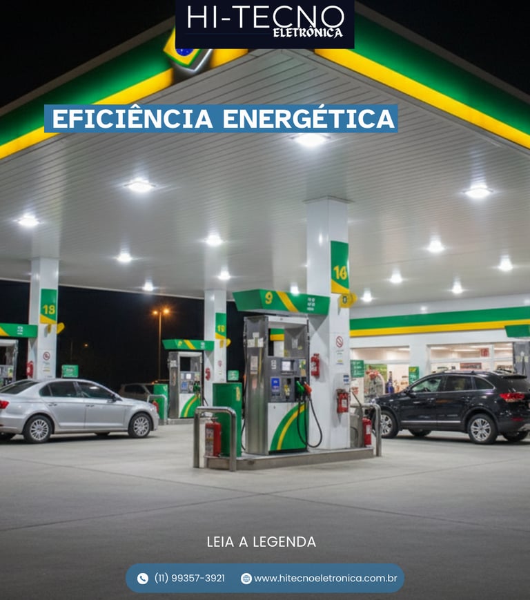 Iluminação e calibragem com precisão, promovendo segurança, eficiência energética e experiência aprimorada para postos, condomínios e empresas.